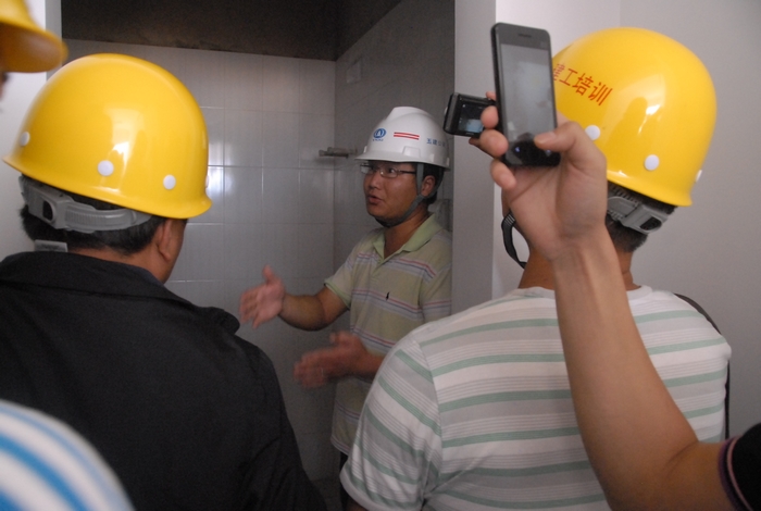 到项目参观学习的技术骨干,是集团首批项目总工及技术负责人培训班的学员,在项目部人员的介绍下,学员们了解了整个项目的建设情况,并重点了解了过程工序样板房的打造和实施。在项目部人员的陪同下,学员们参观了样板房实体。部分学员还在参观学习中与项目部管理人员展开了交流讨论。