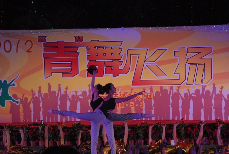 19时30分,晚会在器宇轩昂的《鼓舞五建》中拉开帷幕,接下来不到一个小时的时间里,西班牙斗牛舞、爵士舞、踏板操、现代舞、歌曲表演等节目展现了五建青年多才多艺的一面。