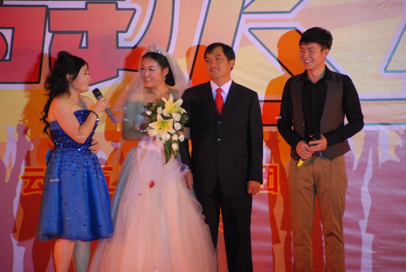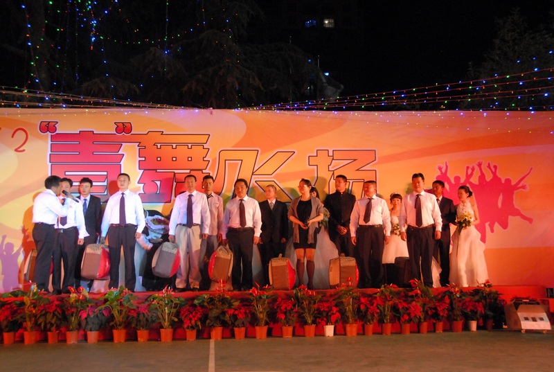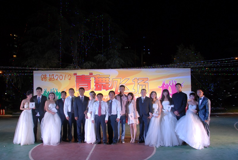5月3日晚,公司举办“跨越2012 ‘青’舞飞扬”主题晚会庆祝五·四青年节的到来,晚会除了精彩纷呈的文艺汇演,还为来自基层的七对新人举办了一场隆重的集体婚礼。