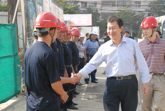 陈勇在参观施工现场时详细询问现场的劳动力、材料、资金组织及进度安排情况。在听了五公司副总经理李兴奎和现场项目经理赵麟的汇报后。他说,今天来调研是要总结市政府实行代建管理机制以后,在哪些方面还需要完善,同时也对项目推进过程中出现什么问题做一些调研了解,解决一些问题。这个项目处于市中心,短期内可能也是全市工人阶级的最后一栋楼,五公司要注意抓好安全和质量工作,抢抓进度,确保项目按节点要求完成。他强调,实行代建后不允许出现资金不到位的现象,如果出现,要追究责任。
