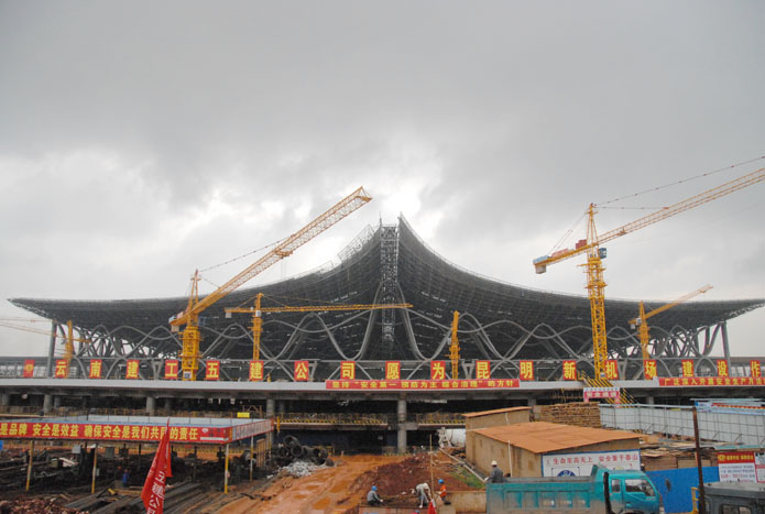 随着昆明新机场航站楼屋顶钢网架金属屋面的封顶,一只振翅欲飞的大鹏已初具雏形。在大鹏脚下默默奋战了几百个日夜的公司新机场直管部,也即将迎来一场决定性战役。2010年6月25日,新机场停车楼及高架桥工程决战190天誓师动员大会在公司新机场直管部会议室召开。