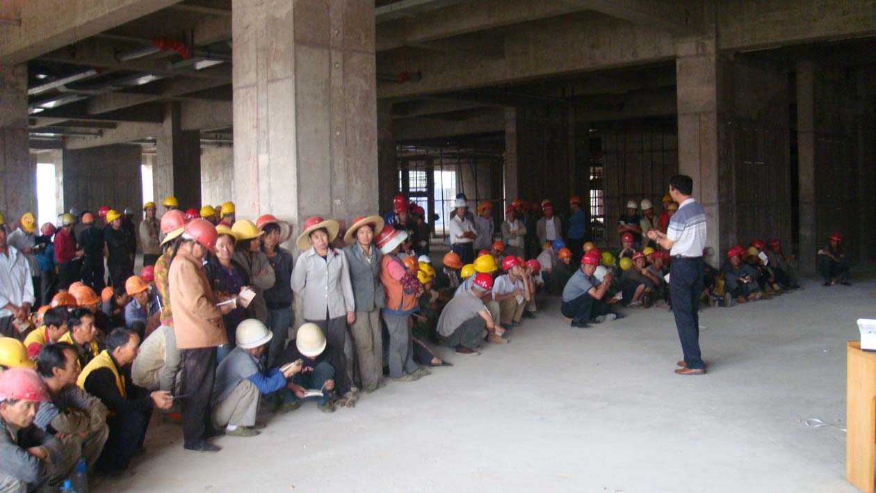 建筑业是我国国民经济的重要支柱产业之一,也是一个危险性较大的行业,施工现场存在着很多不确定的危险因素,为了做到既不伤害自己,也不伤害他人,同时还能不被他人伤害。云纺国际商厦项目部于2005年5月24日在施工现场开展安全教育培训,云南省安全局的工作人员到现场主讲,参加培训人员有现场管理人员、现场施工劳务班组人员,并给每人发放了一本《建筑业农民工入场安全知识必读》供学习之用。该书知识全面,图文并茂,包含了进入施工现场必须掌握的安全基本知识、施工现场注意事项、相关法律法规摘录、常见安全警示标志牌、应急电话等。授课结束后进行了“发昆明地区建筑业初级安全教育测验题”测试,让所有人员更进一步加深对知识的了解和掌握。