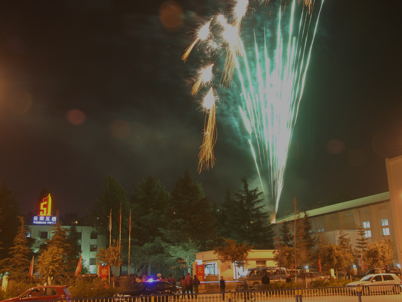 在昆明的公司领导、数千名职工及家属和周边居民参加了焰火晚会并观看了焰火。