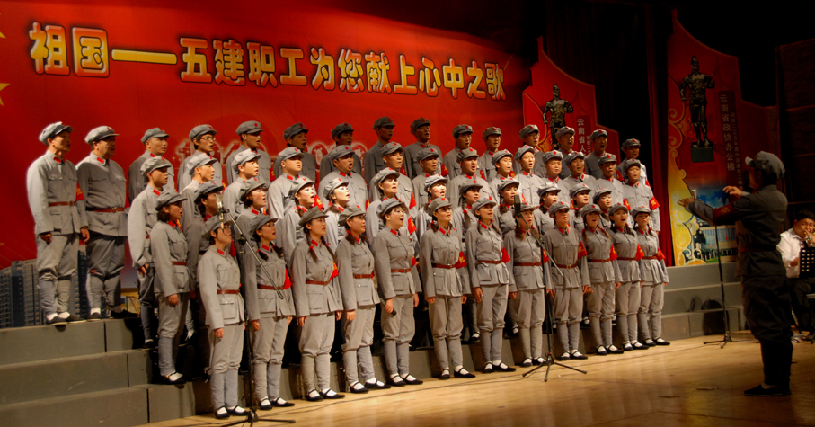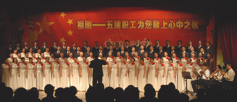 五建公司于9月28日晚在公司礼堂举办以《祖国――五建职工为你献上心中的歌》为主题的文艺晚会,庆祝中华人民共和国建立六十周年。来自公司和基层22个单位的700多名在职及退休职工,共演出了19个节目,大家以饱满的热情祝福伟大的社会主义祖国,用嘹亮的歌声抒发对伟大祖国的热爱,以昂扬的斗志表达实现公司跨越式发展的决心。