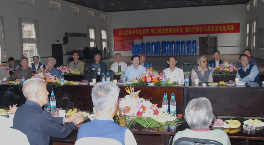 公司董事长、党委书记杨福和主持座谈会并介绍了公司改革和发展情况以及正在实施中的发展规划; 总经理方菊明介绍了公司近年生产经营管理情况及下一步的工作安排。公司领导都表示,企业今天的发展都是与过去数十年来老领导、老职工艰苦奋斗奠定的基础分不开的,也是跟国家改革开放正确的方针政策和当前扩大内需加大基建的良好经济形势分不开的。只要大家齐心合力,公司将会有更好的发展前景。
