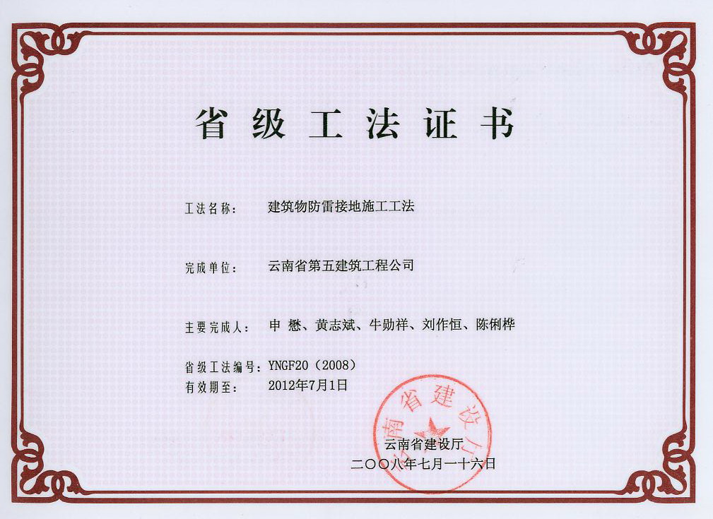 云南五建编制的省级工法—建筑物基础防雷接地施工工法