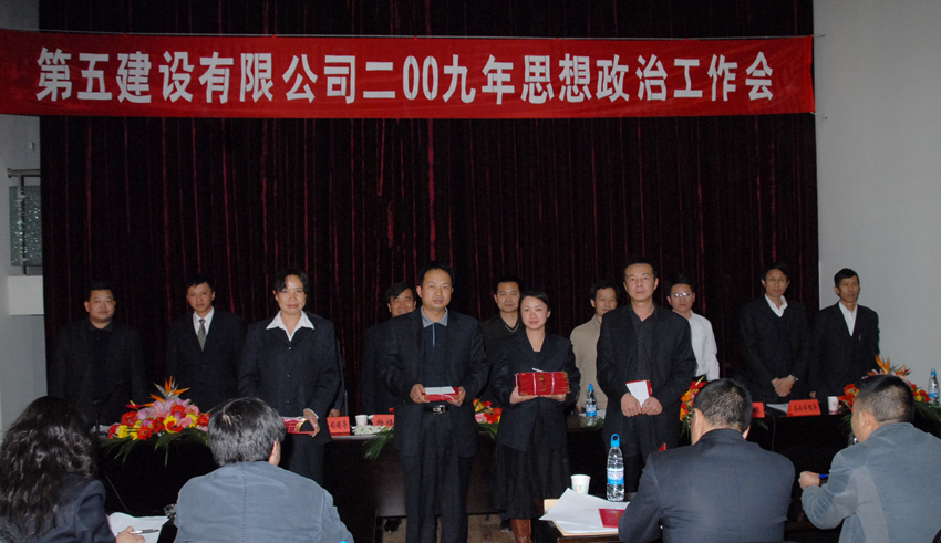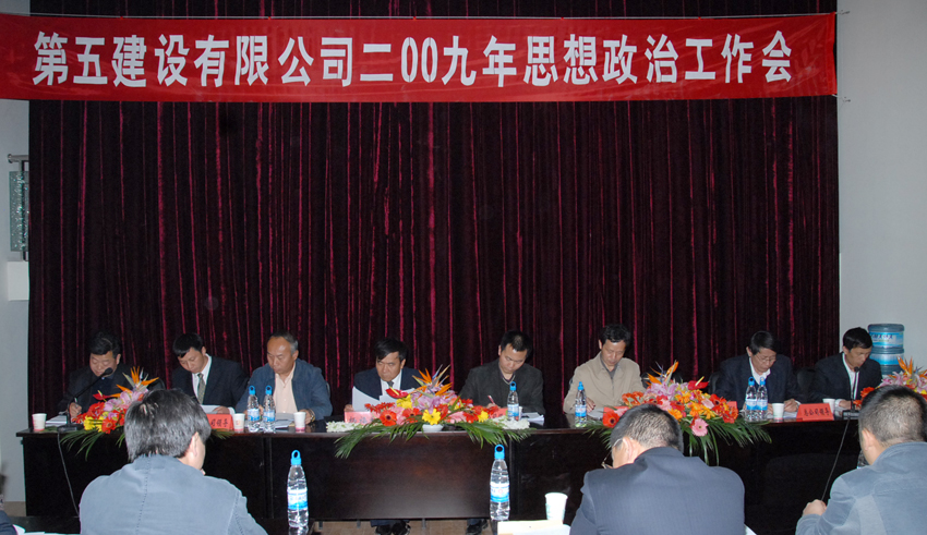 五建设有限公司思想政治工作会于2009年3月3日召开。会议对上年度公司思想政治工作进行了总结,根据集团和公司职代会精神,对今年工作作出安排。对2008年度职工思想政治工作研究先进集体、优秀论文作者、新闻报道工作先进单位和先进个人进行了表彰。结合今年公司工作目标确定并下发了加强宣传报道工作实施办法和当前职工思想政治工作研究参考选题。