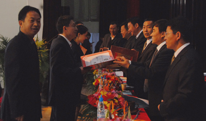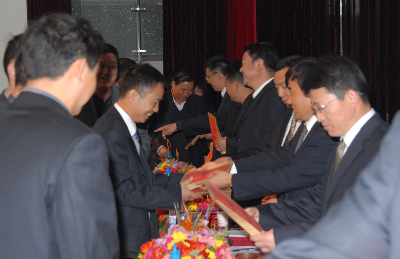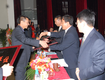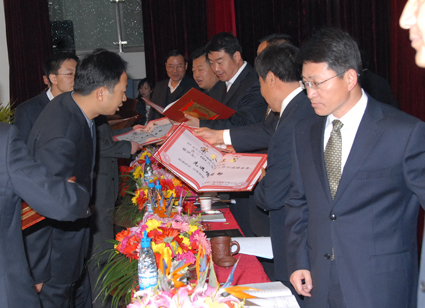 董事长杨福和代表公司、工会主席李兴奎代表职工签订三项集体合同。