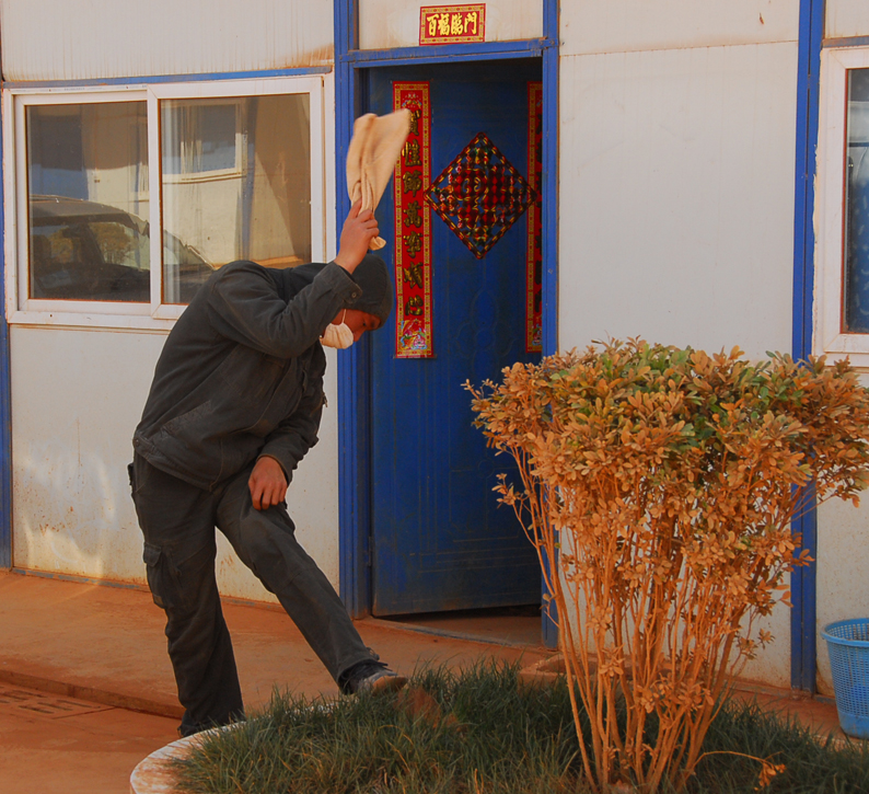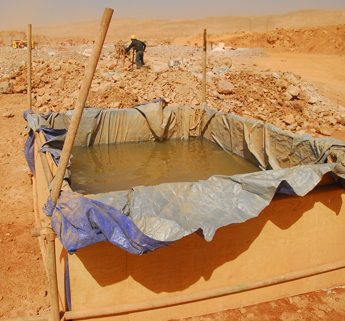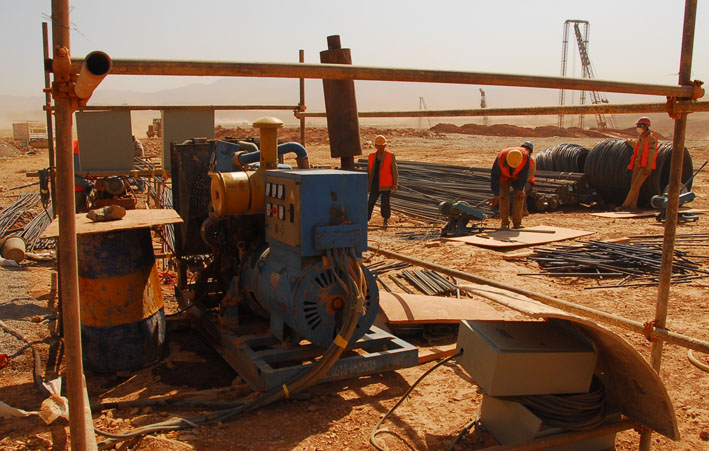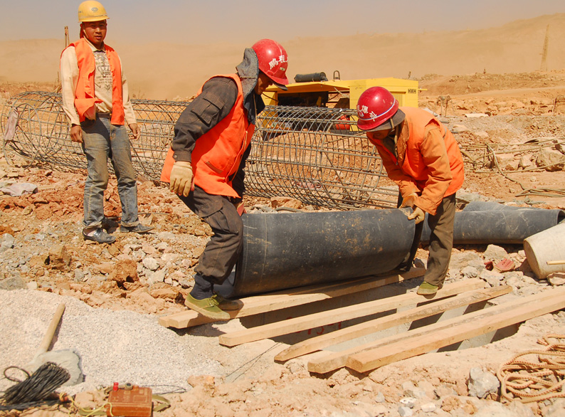 为进一步搞好A2标段的950多棵人工挖孔桩施工,公司组建了由公司直接管理的新机场工程项目部。工地上没有水,施工用水和生活用水就购买从7-8公里以外拉来的水,项目部在各个施工点搭建了十几个临时水池蓄水,以保证施工正常进行;工地上没有电,为了保证施工用电,工地上自备了多台柴油发电机发电 ;春节后进入昆明的多风季节,久旱无雨的新机场工地上,到处尘土飞扬。项目部为每一个人购置了口罩,不管工地上气温多高,都带着口罩作业,全体人员天天都灰头土脸地奋战在工地上。