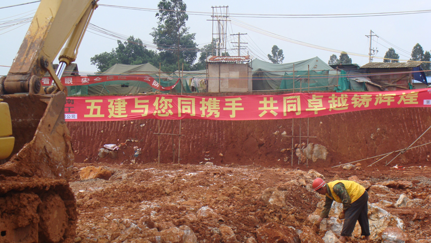 这批人工挖孔桩、嵌岩基础工程,大部分是位于岩溶地带,岩石层、破碎岩层与粘土混杂在一起,开挖极其困难。关键时刻,五建公司果断决策,决心再难啃的硬骨头也要啃下来,为云南建工争光、为云南的建筑施工企业争气。
