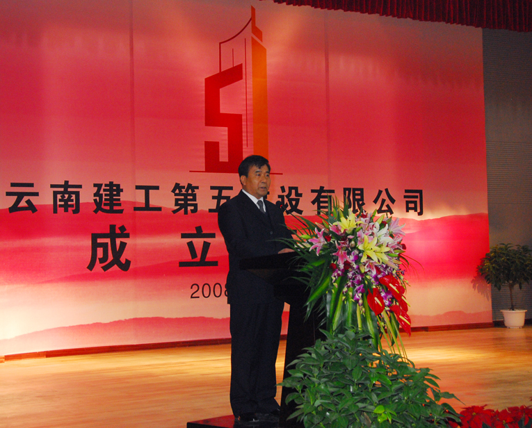 云南建工第五建设有限公司董事长、党委书记杨福和在成立庆典上致辞,回顾了公司发展历程和对云南建设事业所作出的贡献,也指出了企业面临的机遇和挑战,强调了深化改革的紧迫性。提出了当前和今后的工作目标,希望全公司职工站在新起点 满怀新希望 再创新辉煌,进一步团结拼搏,拓展市场,强化管理,提高效益,为实现新的发展努力奋斗。