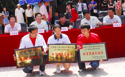 第五建设有限公司成立以后举办的第一届职工篮球运动会,于7月7日顺利闭幕。来自基层和公司机关15个单位的29支代表队,经过12天激烈角逐,由公司第一、二、六直管项目部组成的第三联合代表队囊括了男女队冠军,505分公司代表队和公司机关代表队分别获得男队和女队亚军,男队和女队季军分别为501分公司代表队和506分公司代表队。(伍轩)