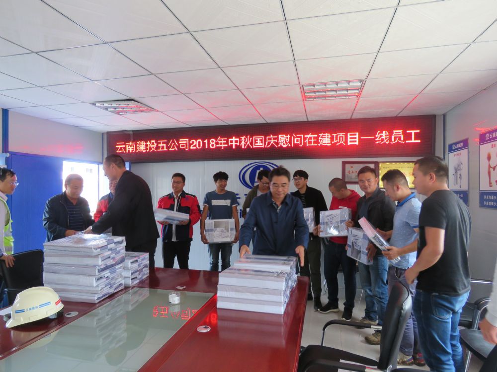 9月21日,五公司副总经理杨永代表公司到香丽高速十一工区项目部进行双节慰问。 杨永传达了公司对一线员工的节日祝福,并对员工的努力工作给予肯定,希望员工在今后的工作中再接再厉,争取做得更好。随后送出了公司的慰问品,把月饼和床上用品三件套亲手送到每个员工手中,让他们感受到公司的祝福。同时也给奔波在工地的农民工朋友送上月饼,对他们在工地的辛苦劳动表示由衷感谢。 ...