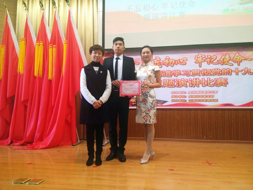 12月7日,由黑林铺街道办事处主办的“不忘初心 牢记使命”演讲比赛在云南经济管理学院举行。公司推荐第八直管项目的李娜及公司信访维稳办公室的陈坤搭档演讲的《澜沧江为初心和使命作证》以全场最高分荣获一等奖。 本次演讲比赛有来自各社区党(总)支部、云汽实业有限公司、中国建材地质勘察中心云南总队、云师大商学院、云南经济管理学院、昆...