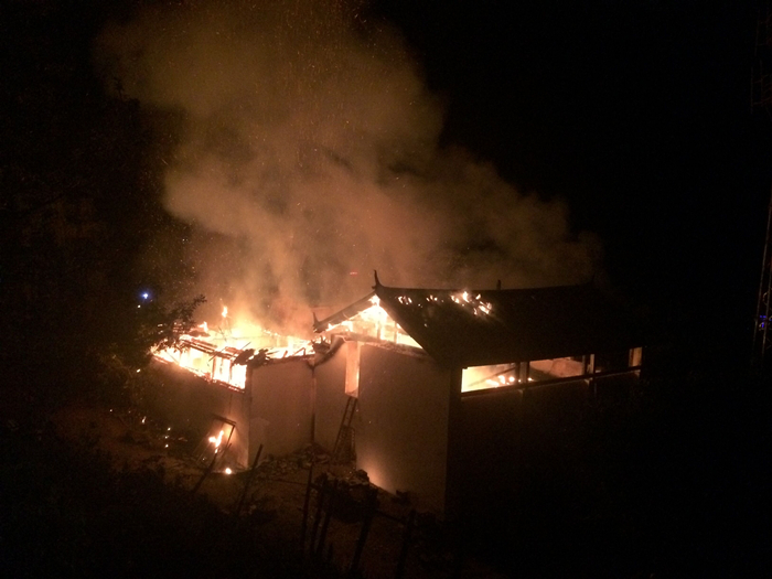 “快看,那户村民家是不是失火了?”7月28日晚9点22分,香丽高速项目十一标施工员扎西德勒在经过星明村星明二组时,发现该村一村户刚新建的民宅正在一片火光中,房子浓烟滚滚,明火迅速向房梁上蹿。 扎西德勒立即将车停下,“快来人啊,这里失火了,乡亲们赶紧过来救火!”扎西德勒一边跑一边喊,并打电话报警。由于新建的民宅是土木结构,不...