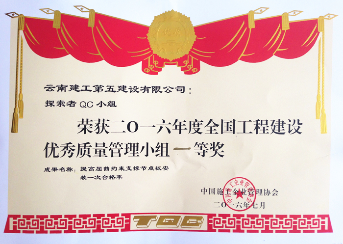 2016年7月7日,公司第四直管项目部申报的“提高屈曲约束支撑节点板安装一次合格率”成果获中国施工企业管理协会2016年度全国工程建设优秀质量管理小组一等奖;“提高后浇带独立柱支撑施工一次合格率”成果获中国施工企业管理协会2016年度全国工程建设优秀质量管理小组二等奖。此前,该小组的以上两项成果均获得2016年度云南省工程建设优秀质量管理小组一等奖。 &nbs...