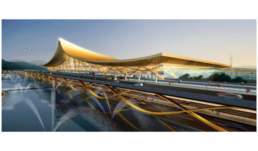 五建公司中标昆明新机场A-3合同段工程 机场航站楼前停车楼及站前高架桥位置图 机场航站楼前停车楼及站前高架桥示意图 站前停车楼建成后位置 航站楼前高架桥局部效果图 阳春三月传佳音——云南建工第五建设...