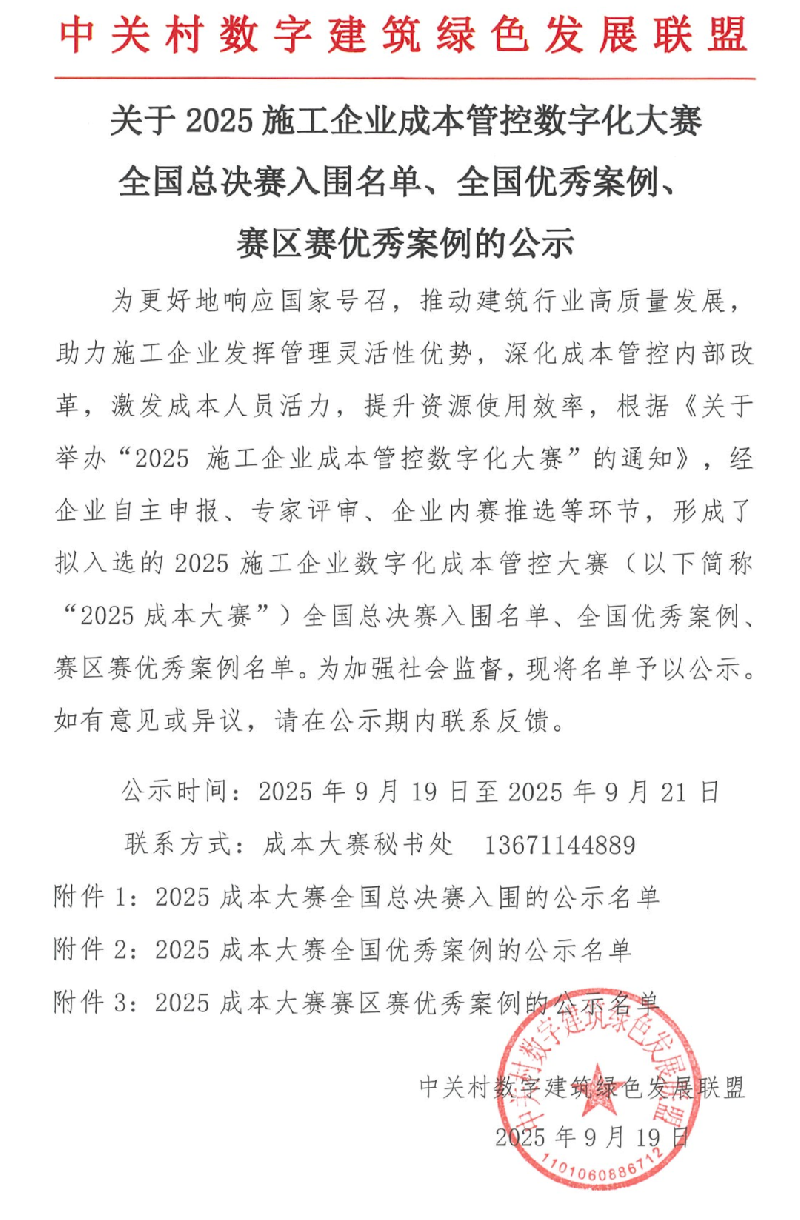 公司两个项目在“2025年施工企业成本管控数字化大赛”中荣获佳绩