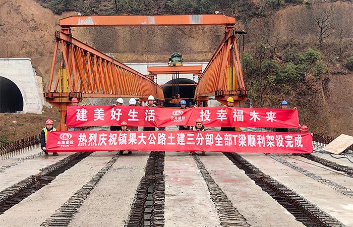 镇果公路三分部项目五谷大桥完成全部T梁架设工作