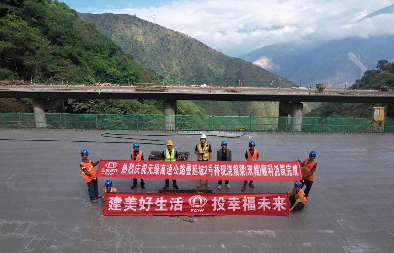 冲刺四季度丨元绿高速公路项目二分部曼延坡2号中桥现浇箱梁(双幅)顺利浇筑完成