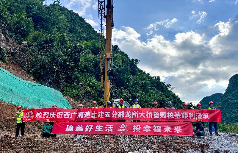 西广高速公路项目土建五分部龙所大桥首颗桩基顺利完成浇筑