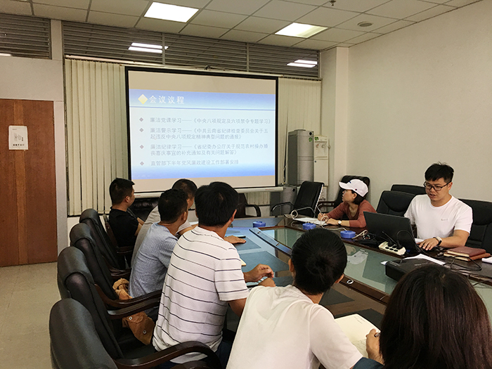7月9日,第一直管部党支部召开党风廉政建设专题会,研究部署下半年党风廉政建设工作。 直管部党支部书记熊志带领大家重温了“中央八项规定”、“六项禁令”的具体内容,分别从经费管理、公务接待、会议活动、公务出差、公款旅游、临时出国、公务用车改革、停建与清理办公用房、操办婚丧喜庆事宜、工作纪律、廉洁自律11类行为进行了剖析,以案例说纪律,加深直管部人员对“中央八项规定”等精神的理解认知,...