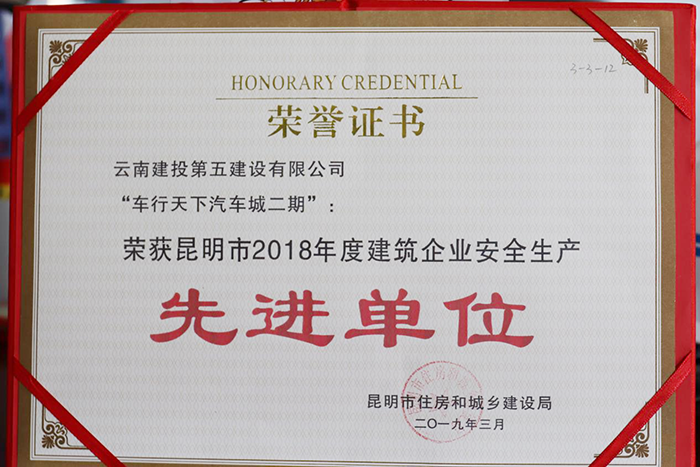近日,在昆明市住房和城乡建设局召开的2018年度建设工程质量管理、安全生产、文明施工及扬尘治理管控总结暨2019年度工作安全部署会议上,表彰了一批先进项目和个人。其中,车行天下项目部荣获“昆明市2018年度建筑企业安全生产先进单位”和“昆明市2018年度建设施工安全生产标准化工地”两项大奖,项目经理汪家顺荣获“昆明市2018年度建筑企业安全生产先进个人”荣誉称号。 据了解,车行天...