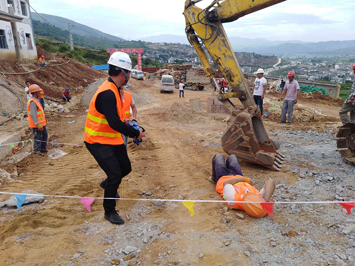 6月26日,直九部在大理市上关水厂项目部组织开展施工现场机械伤害应急救援演练,项目部管理人员及班组成员共20人参与演练,直管部经理王家书及直管部安全总监王松涛对演练过程进行指导。 上午8:00,班组班前活动结束,班组演练人员就位,配合挖机进行路基清土。8:10,一名作业人员模拟不慎被挖机机械臂回转碰撞倒地,现场管理人员立即将事故情况报告项目经理,项目经理即宣布启动应...