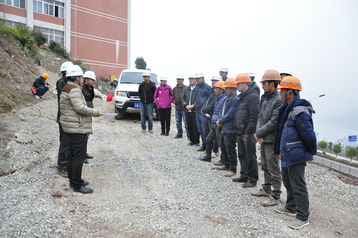 12月5日,路桥二部绥江项目部在绥江一中抗滑桩施工现场开展了人工挖孔桩意外事故应急救援演练,由党支部书记张永忠带队的“五位一体”检查小组在现场进行观摩、指导。 上午9点30分,演练正式开始,一名施工人员在井底模拟昏迷状态,井上操作工人在呼叫没有反应后马上将情况汇报到现场施工班组长处,班组长核实后立即向项目部管理人员进行报告,...