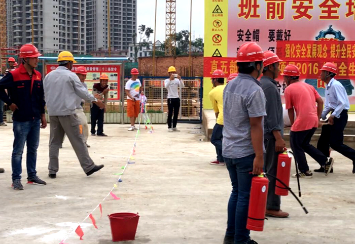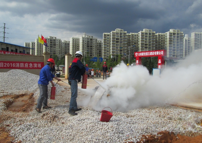 2016年6月24日下午,五〇七直管部镇雄县2012年城镇保障性安居工程社区中心商业建设项目进行火灾应急救援演练。 施工现场模拟发生火灾,在固定区域点燃提前准备好的木料,滚滚浓烟弥漫开来,现场负责人立即组织灭火,快速用灭火器控制了火势,并第一时间通知现场安全总监。演练过程中,项目管理人员及劳务班组都参与到灭火中来,学习如何...