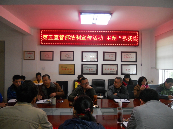 12月7日,第五直管项目部依次在昆明片区项目部及元江项目部开展法制宣传活动。 直管部昆明片区法制宣传活动于7日上午利用周例会开展,直管部领导班子成员、科室负责人、项目经理共18人参加,元江项目部活动利用晚上综合大检查会议开展,直管部领导班子成员、管理人员共34人参加。 本次活动主要围绕...