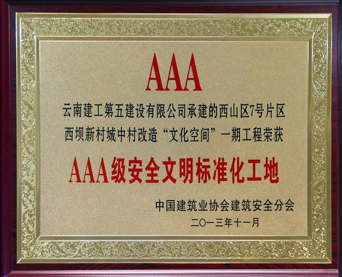 文化空间项目喜获2013年“AAA级安全文明标准化工地”