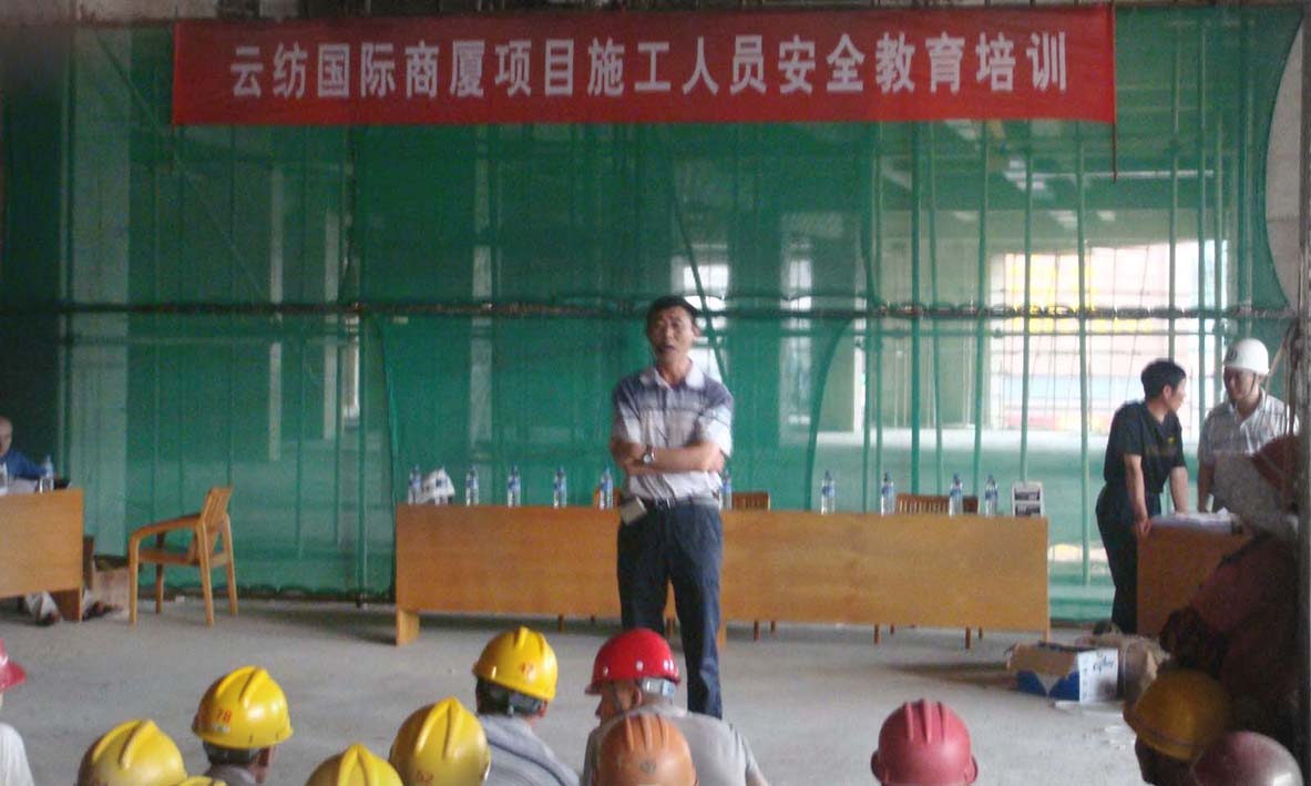 建筑业是我国国民经济的重要支柱产业之一,也是一个危险性较大的行业,施工现场存在着很多不确定的危险因素,为了做到既不伤害自己,也不伤害他人,同时还能不被他人伤害。云纺国际商厦项目部于2005年5月24日在施工现场开展安全教育培训,云南省安全局的工作人员到现场主讲,参加培训人员有现场管理人员、现场施工劳务班组人员,并给每人发放了一本《建筑业农民工入场安全知识必读》...